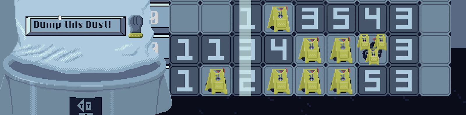 The premise of Broom Sweeper is a lot like Minesweeper where you progress by clearing squares in rooms. In Minesweeper, you’re clearing bombs, but in Broom Sweeper, you are a janitor clearing dust and trying to avoid dust bunnies. But, this game also has the added roguelike elements where some rooms have shops where you can buy upgrades for the following rooms, or story progression that can also give you upgrades. These upgrades and additions to the story help to teach you more about broom sweeping and assist in clearing rooms faster and more efficiently.